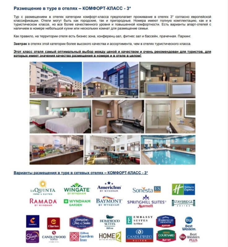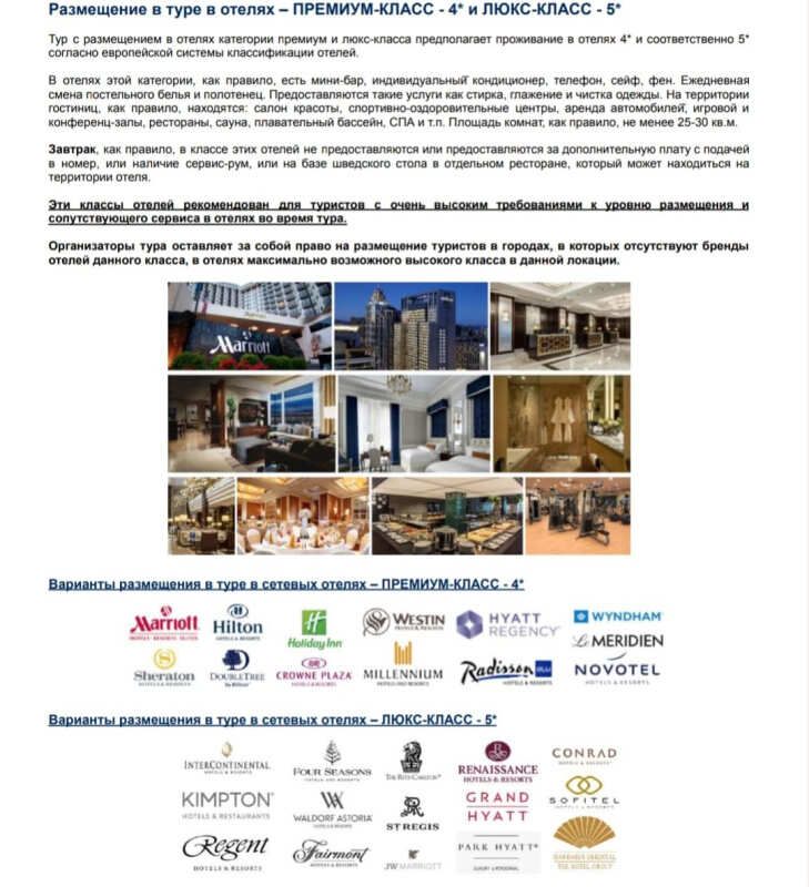 - - проживание в отелях выбранного класса;