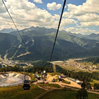 Канатная дорога Романтик. Если позволит время, прокатимся по канатной дороге на высоте 2 500 метров над уровнем моря. Отсюда открывается великолепный вид — все как на ладони! Также можно прокатиться на горных лыжах и сноубордах по склонам (за доплату).