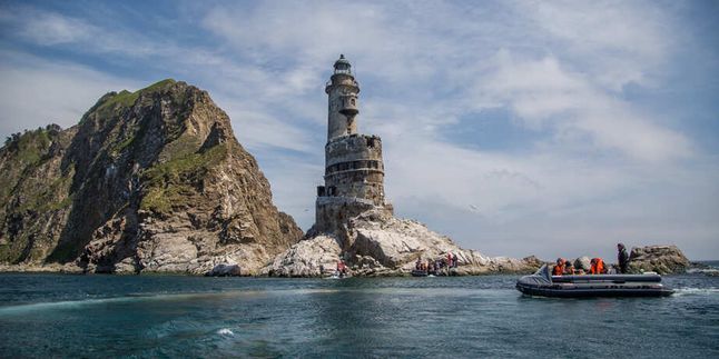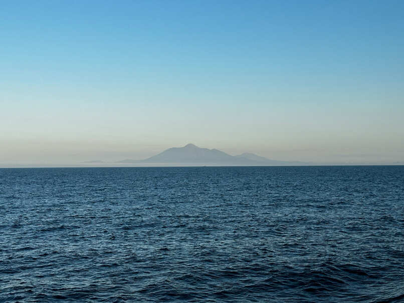 Пора прощаться с Итурупом! Вас ждёт следующий остров — Кунашир — и отправитесь вы туда на теплоходе. На протяжении всего круиза вокруг будут только бескрайняя гладь воды, стаи дельфинов, которые обычно сопровождают судна, и парящие в облаках птицы. Это отличная возможность отдохнуть — физически и морально.