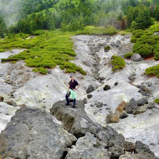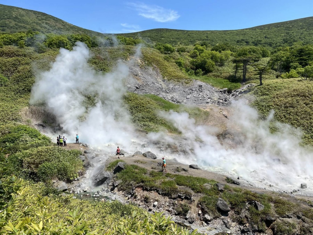 Утром вы прибудете в Южно-Курильск и заселитесь в гостиницу. Затем отправитесь к вулкану Менделеева. Вас подвезут на машине по возможности близко и с этого места начнётся треккинг — высоту будете набирать постепенно, прогуливаясь по бамбуковым зарослям. На фумарольном поле — двухчасовой привал, чтобы отдохнуть, перекусить, сполна насладиться удивительными пейзажами и внимательно рассмотреть фумаролы — трещинки и отверстия на лавовой корке, по которым поднимаются потоки горячего пара и газов.