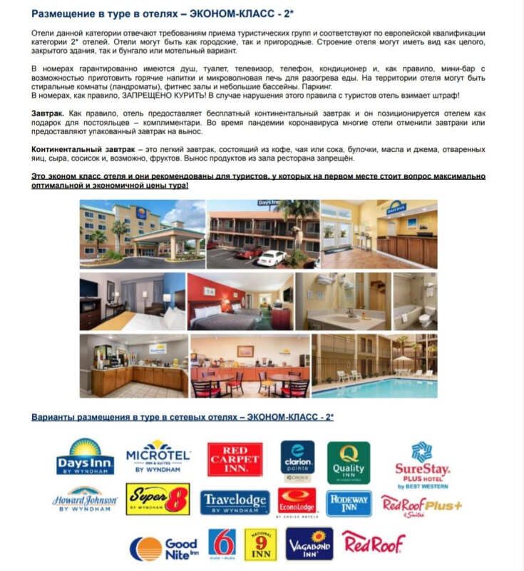 - - проживание в отелях выбранного класса;
