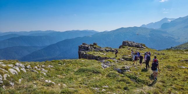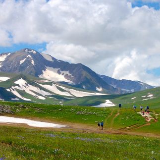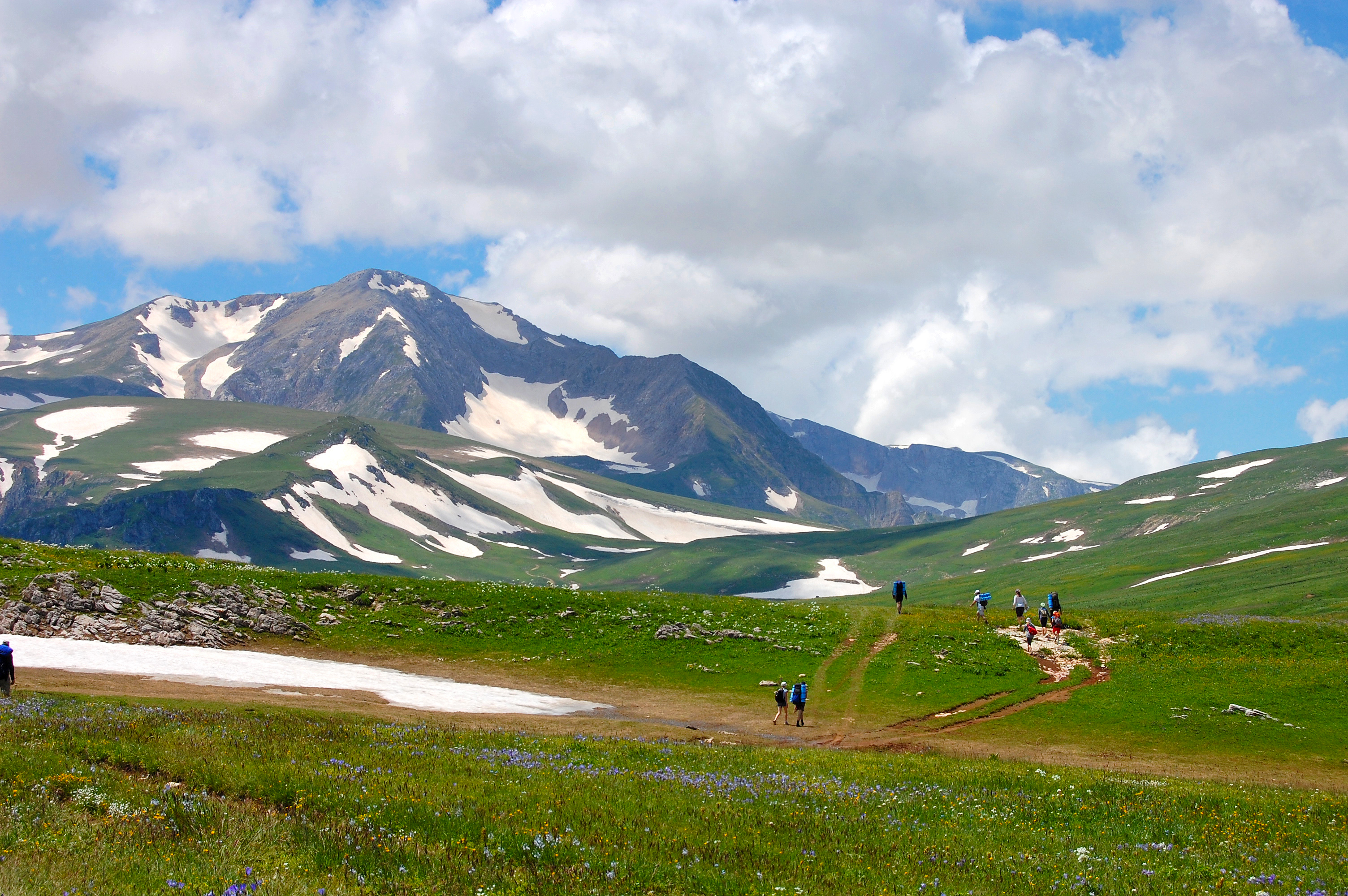 В этот день маршрут пройдет по территории Кавказского биосферного заповедника, в зоне альпийских лугов. Впереди - бескрайний простор плато с его табунами лошадей, карстовыми воронками и ослепительно-белыми пятнами снежников на зеленых склонах, захватывающая панорама горных хребтов и долин с высоты более двух километров.