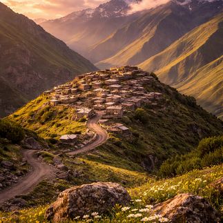 Село над облаками, где каменные дома будто продолжают скалы, а люди говорят на языке, не похожем ни на один другой. Здесь прошлое не спрятано за стеклом — оно живёт в лицах, в быту, в каждом шаге по древним тропам. Панорамы Большого Кавказа и тишина, которая остаётся с вами надолго.