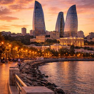 Вечером — прогулка по Приморский бульвар, где Каспий встречает город, а Flame Towers зажигаются, словно огни большого восточного костра.
