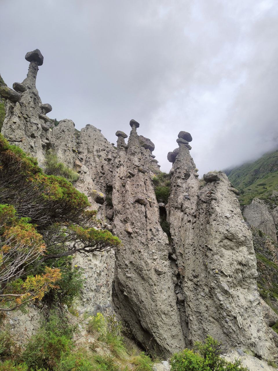 Это природное явление столбы, результат векового воздействия воды и ветра на твердые породы, придавших этим скалам уникальные формы, напоминающие грибы. Диаметр шляпок грибов может достигать 2-х метров, а толщина ножки 1,5 метра.