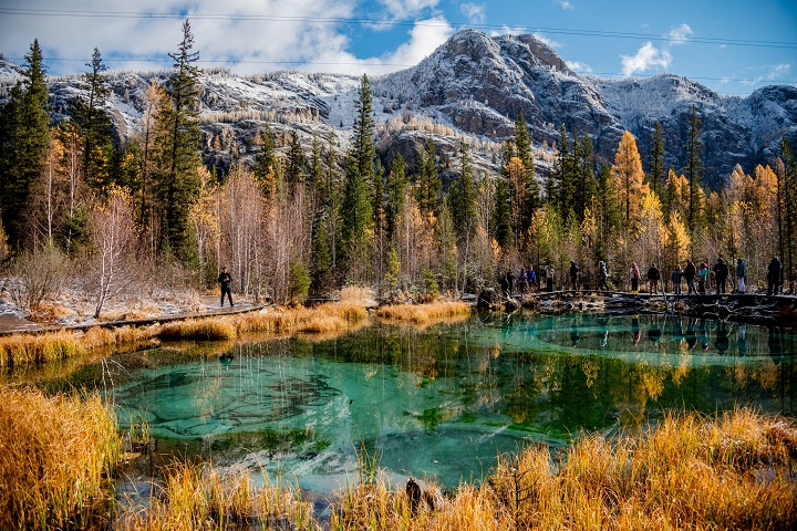 После обеда отправимся в обратную сторону и посетим уникальное Гейзерное озеро. Небольшой водоем с кристально чистой горной водой, завораживающий своими красками. Голубая глина выходит на поверхность дна и создает причудливые узоры. (На локации около 30 минут, озеро диаметром около 10 метров, оборудованные тропинки)