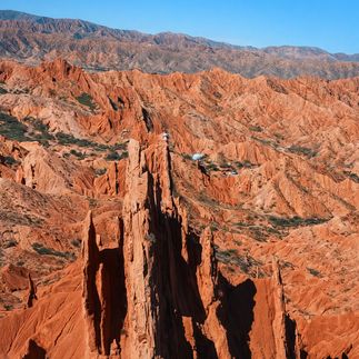 Это небольшое ущелье известно своими ярко-красными глиняными скалами, которые под воздействием ветра и времени приняли фантастические формы. Некоторые природные скульптуры даже получили собственные названия. Самая известная из них — Китайская стена, удивительно напоминающая знаменитый архитектурный символ Поднебесной. Нас ждёт лёгкий пеший треккинг (около 1 км) среди причудливых красных ландшафтов, где каждый поворот словно открывает новую легенду.