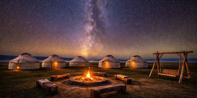 Вечером мы разместимся в уютном юрточном лагере, поужинаем и, если погода будет благосклонна, нас ждёт настоящее волшебство — звёздное небо над Сон-Кл и, возможно, даже сияние Млечного пути.