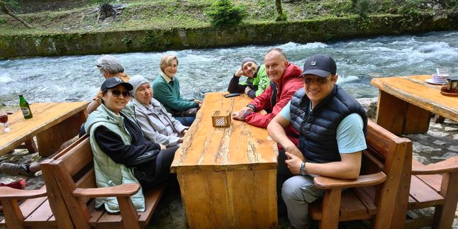 Обедали мы в кафе по пути маршрута. Отличные места, в одном из ресторанов сидишь практически над горной рекой. Невероятные виды!