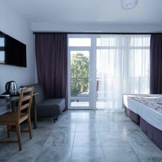 Гостиница. Номера чистые, матрасы удобные, постельное отличное, все чисто. До моря 2 минуты. Рядом парк с качелями и огромными деревьями.