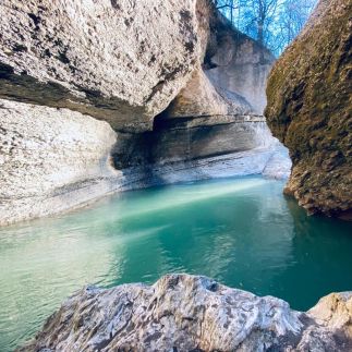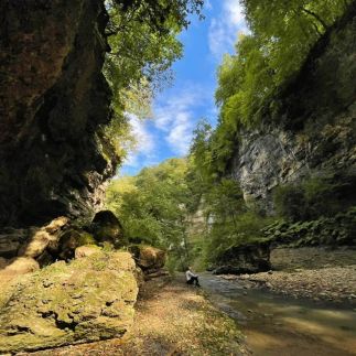 Позавтракаем и отправимся исследовать одно из самых живописных мест Адыгеи — ущелье горной реки Руфабго. Вы полюбуетесь каньонами и каскадом водопадов. Мы пройдёмся по мосту через реку Белая и прогуляемся по оборудованной тропе вдоль говорливого ручья. Увидим увитые лианами густые кроны грабов и вязов. Рассмотрим древние горные породы, складками нависающие над тропой. У самих водопадов устроим пикник. Затем вернёмся в гостевой дом и отдохнём.