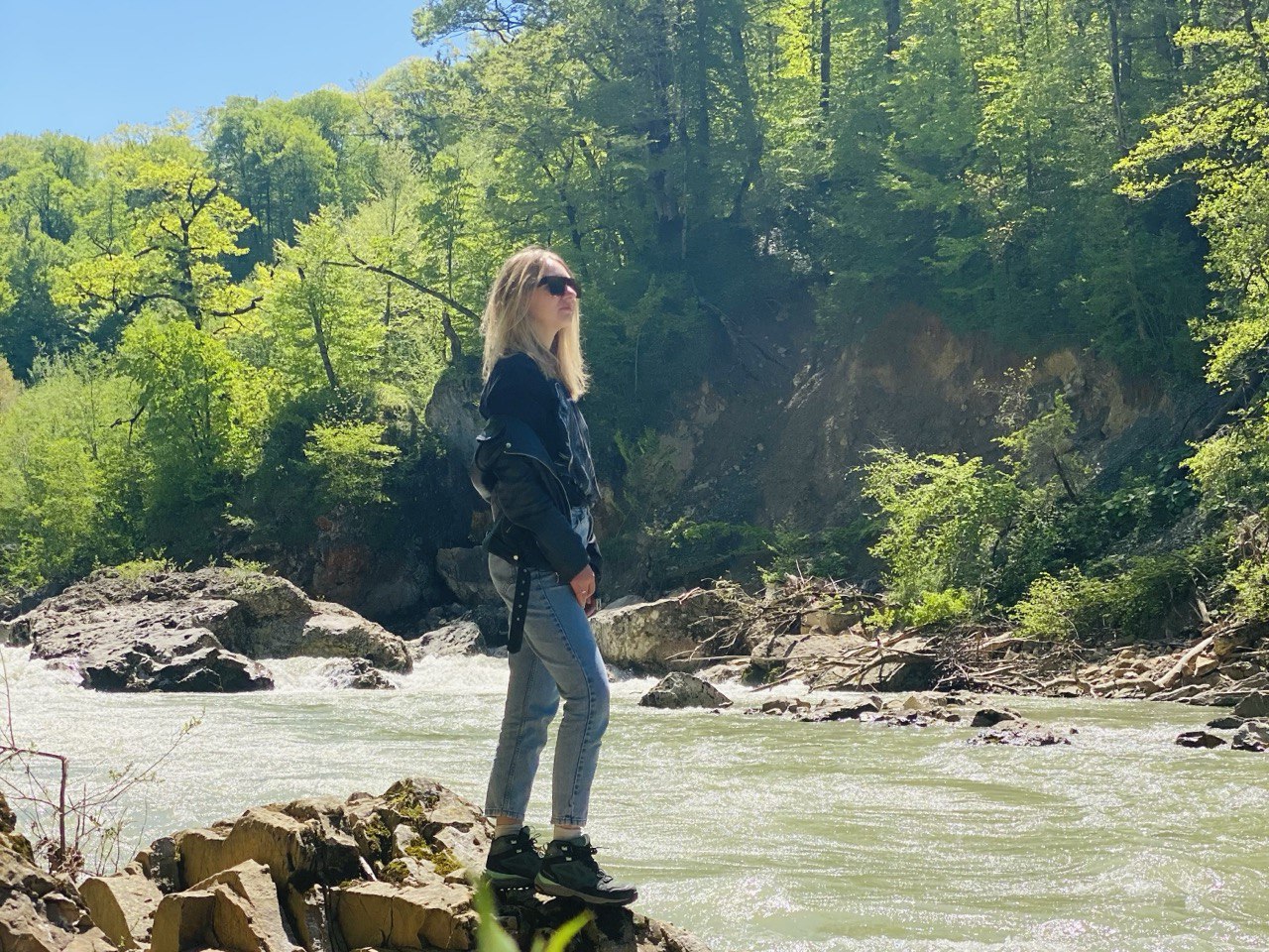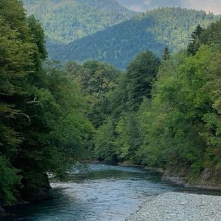 Сразу вырываемся в красоты Адыгеи. Гуляем и вечером заселяемся в нашу гостиницу на берегу горной реки.