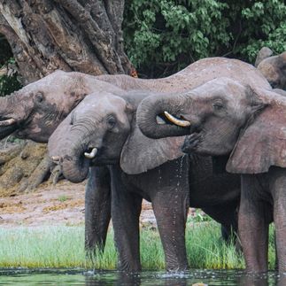 Начнем с прогулки по реке, здесь слоны заходят в воду и переплывают её целыми группами, по берегам пасутся буйволы, бегемоты поднимают головы рядом с лодкой, а крокодилы греются на песке.