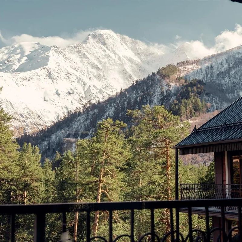 Заселение в атмосферный отель в поселке Архыз с видом на горы.
