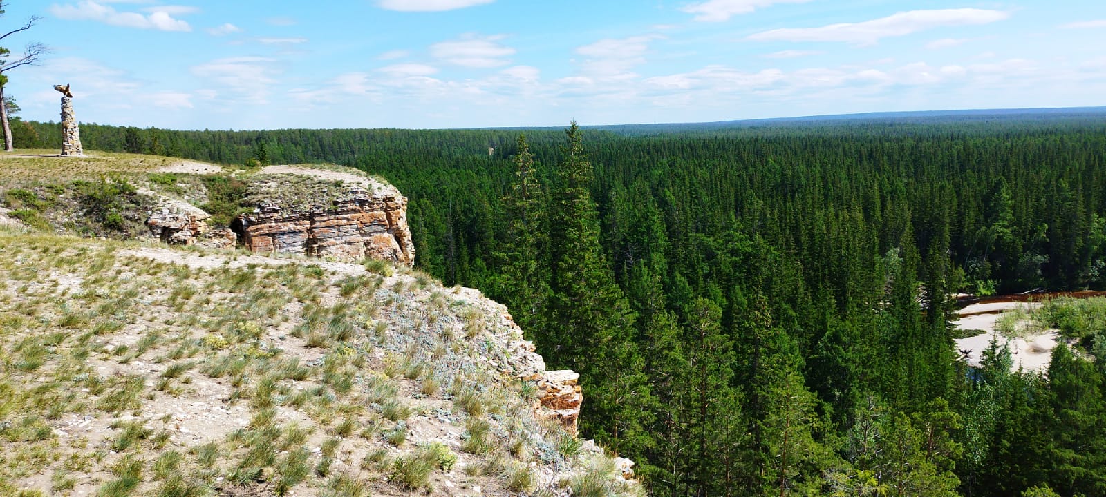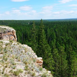 Фотографии на Турук Хайа: отвесный обрыв, с которого открывается впечатляющий вид на тайгу - один из самых фотографируемых видов центральной Якутии. В реальности этот обрыв - скальные образования правого борта долины реки Лютенге. Со скалы можно увидеть панораму долины Самартай и сделать фотографии в духе Я - хозяйка (хозяин) тайги.