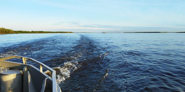 Посадка в моторную лодку и отправление к первому объекту национального парка Ленские столбы.
