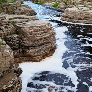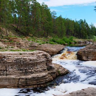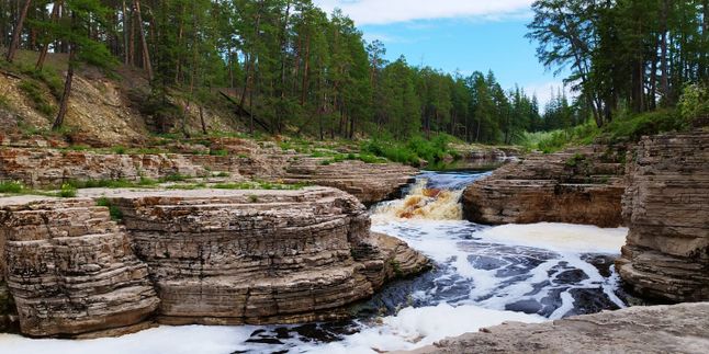Экскурсия на водопады Кюрюлюр - пороги реки Менды, каменистое русло которой продирается через тайгу. Менда образует несколько порогов и глубокие омуты, в которые можно нырять с головой.