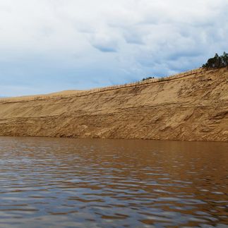 Фотостоп у Тукулана - огромной, таинственного происхождения песчаной горы над рекой Леной, не имеющей аналогов в мире. Длина один километр, высота сто пятьдесят метров. Южный склон почти отвесный 80 градусов, северный более пологий - примерно 60 градусов.