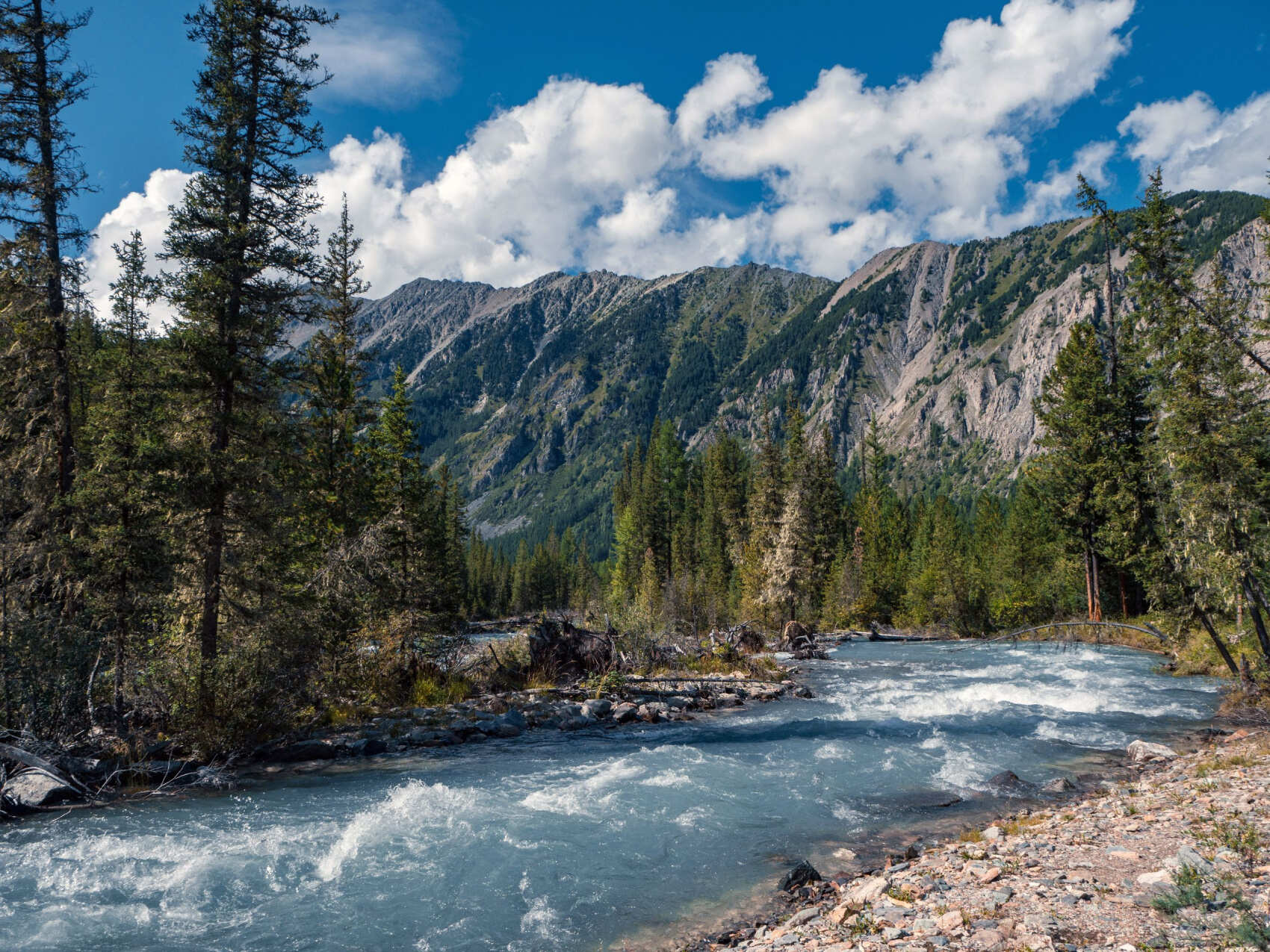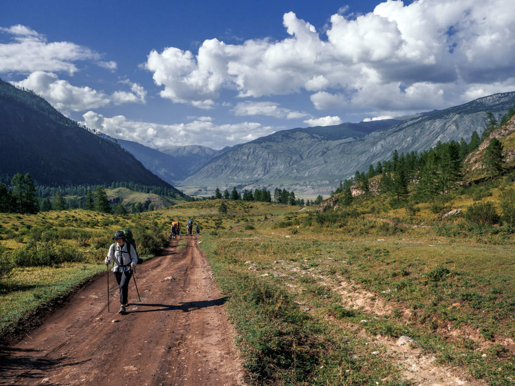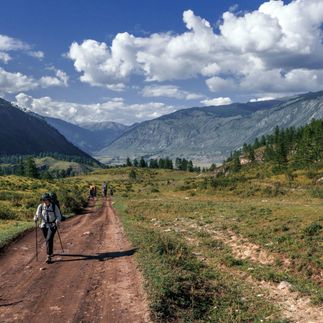 Встречаемся с группой в аэропорту Горно-Алтайска, отмечаемся у инструктора. Рассаживаемся в автобусе, сегодня нам предстоит непродолжительное автопутешествие до села Чибит. Дорога поведет наш автобус по знаменитому Чуйскому тракту. Несколько часов затяжного подъема и, вуаля, мы на Семинском перевале — самой высокой точке Чуйского тракта 1894 м над уровнем моря (9 км подъем и 11 км спуск). Здесь традиционно перекусим в кафе. Дальше дорога петляет сквозь кедровые леса и выводит нас к перевалу Чике-Таман (1460 м). Он хоть и ниже Семинского, но серпантинными спусками и крутыми подъемами напоминает американские горки. Держитесь крепче, этот перевал подарит нам немало острых ощущений! С верхней точки открывается замечательный вид на величественные горы Алтая. Проезжаем место слияния рек Катуни и Чуи и дальше направляемся вдоль долины Чуя. Горная река бурлит, неистовствует, шумит своими порогами — зрелище завораживающее. К вечеру мы наконец-то добираемся до турбазы, где и встанем на ночлег с палатками. Готовим первый походный ужин, знакомимся и отдыхаем от дороги.