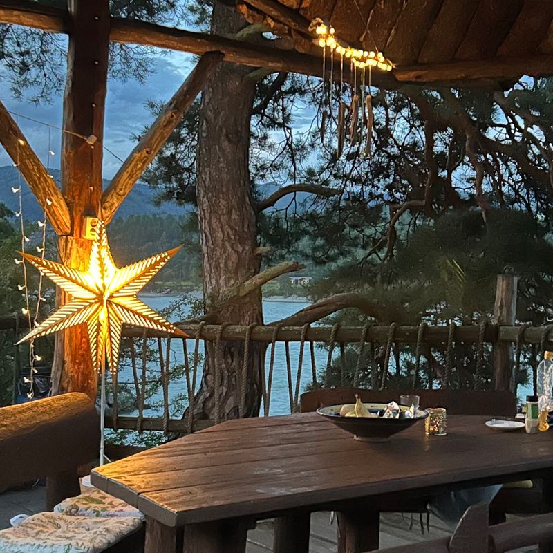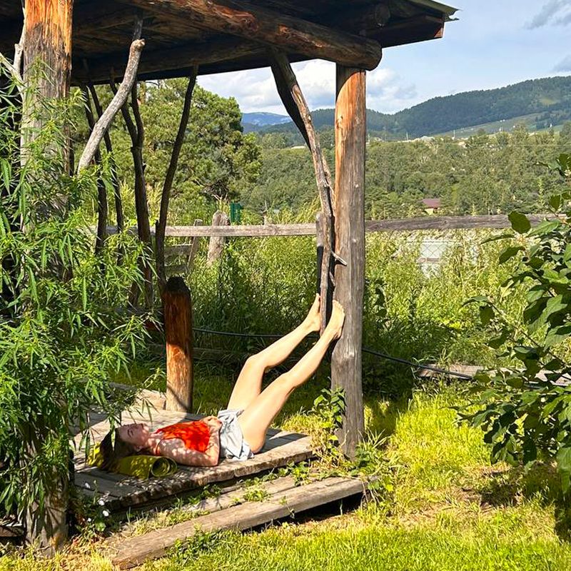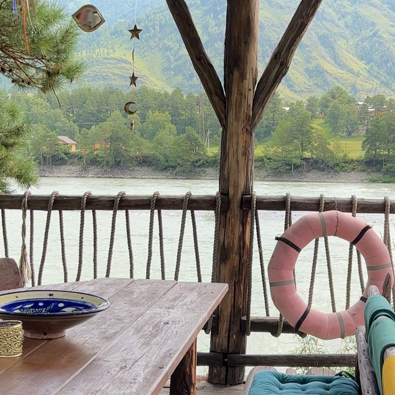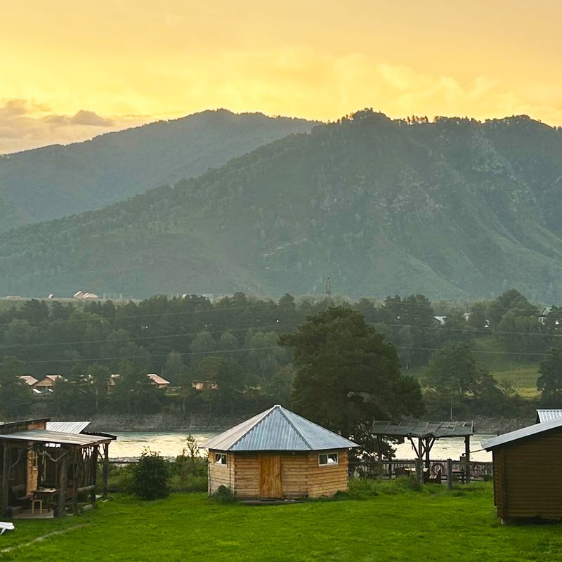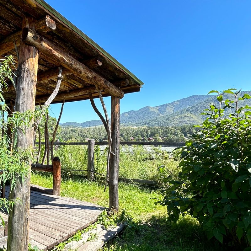 Располагаемся в уютных домиках. После заселения и глубокого выдоха собираемся на обед, на открытой веранде с видом на Катунь, знакомимся и проговариваем ваши цели и задачи на это путешествие.