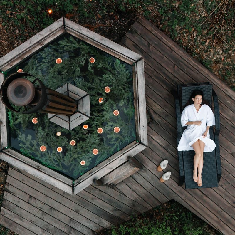Посетить банный комплекс с горячим чаном и еловой качелью