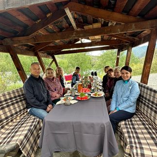 Вечером соберемся все вместе на приветственный ужин в ресторане с прекрасным видом на лазурную Катунь.