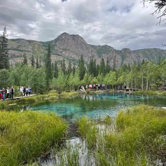 И, конечно же, посетим жемчужину Восточного Алтая Гейзерное озеро. В его центре бьют источники, а дно устилается голубой глиной создаётся удивительный рисунок, который виден сквозь кристально чистую воду, незамерзающую даже зимой.