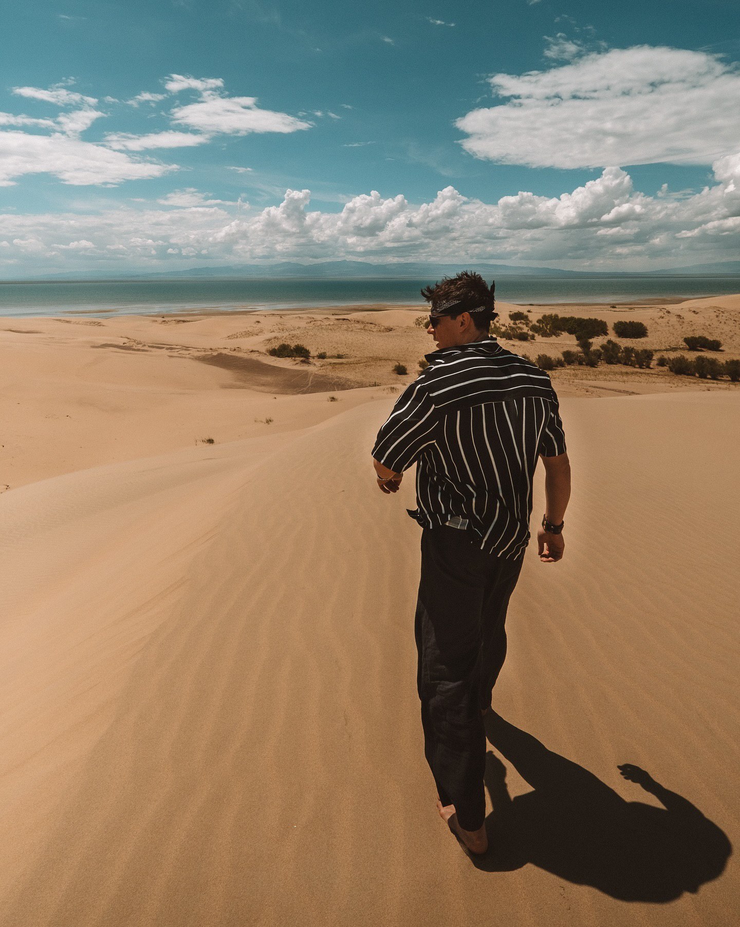Этот день подарит настоящее приключение в сердце монгольской пустыни, где золотые пески встречаются с синими волнами озера и зелёными холмами, упирающимися в снежные вершины гор.
