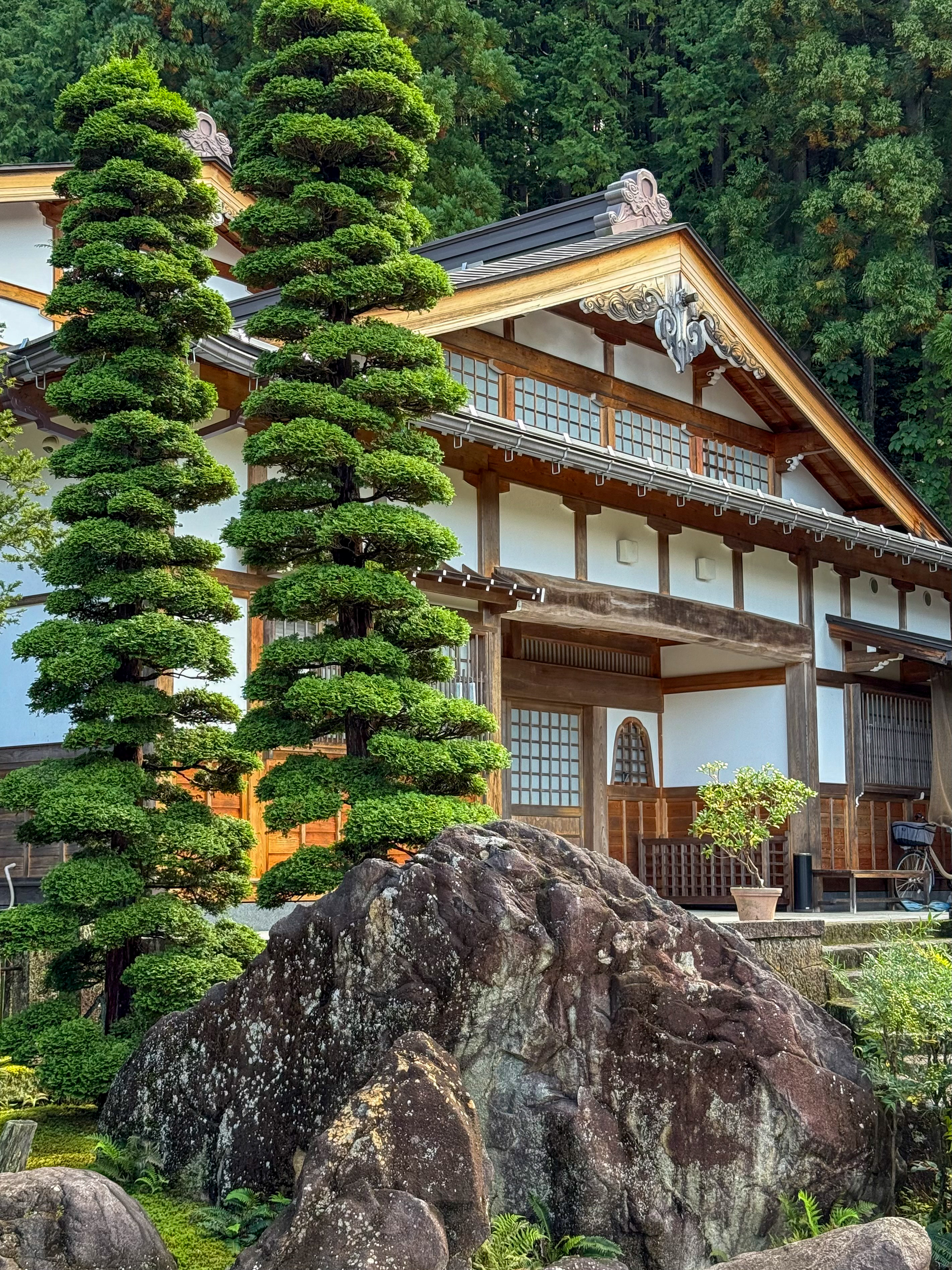 Начнем день с атмосферного утреннего рынка старого города, где на берегу реки кипит оживленная торговля местными деликатесами и ремесленными изделиями. Затем совершим плавный переход к аскетичной духовности горных отшельников, прогуливаясь по тихой храмовой тропе Хигасиямы среди древних кедров и скрытых святилищ. После погружения в медитативную атмосферу вернемся к гармоничной элегантности жизни старого города, исследуя кварталы эпохи Эдо с их темными деревянными фасадами, зайдя в старинную сакеварню на дегустацию местного напитка и посетив музей под открытым небом Такаяма Дзинзя с его уникальной коллекцией традиционных зданий.