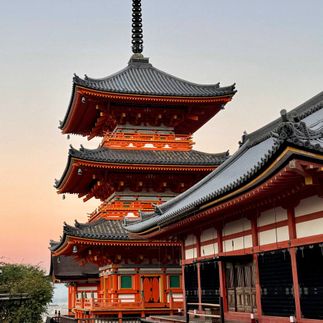 Добро пожаловать в Киото — сердце традиционной Японии. Утром — знаменитые алые ворота Фусими Инари, тянущиеся по склону горы. Потом — Арасияма и ее бамбуковый лес: звук, как в кино