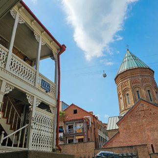 Сегодня нас ждет пешеходная экскурсия по Тбилиси. Начнем с исторического центра города - он застроен трехэтажными домиками с резными балкончиками и верандами. Дома свисают над скалой и вызывают восторг.