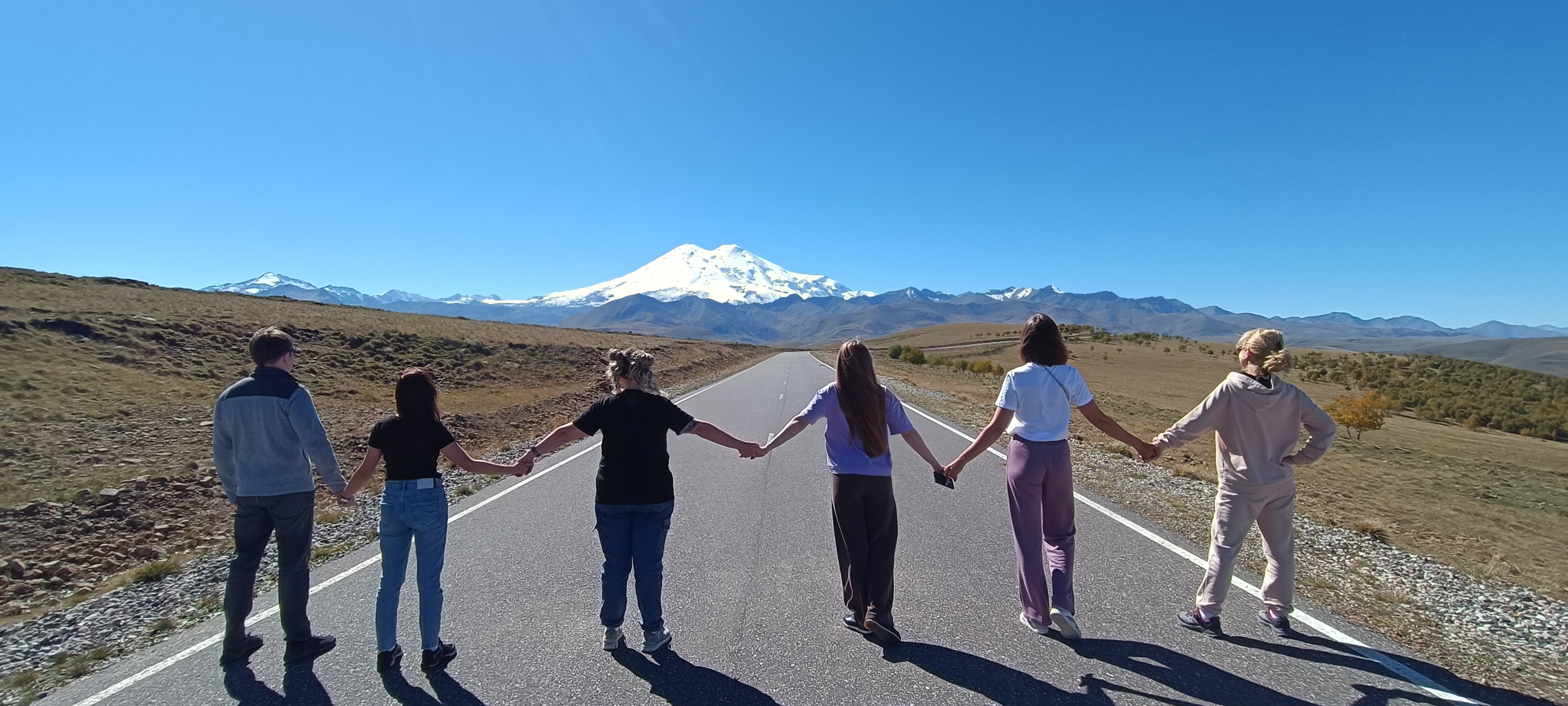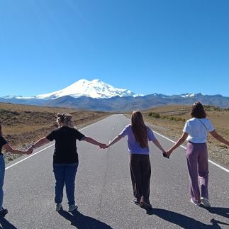 Ранний подъем. Ехали через Кабардино-Балкарию, слушая гида про "окна, заборы и стены" (местная архитектурная особенность). На канатке до Эльбруса не хватило высоты, зато хватило впечатлений: виды — космос, бегать, прыгать - кислорода не хватает. Отправили открытку с самой высокой почты. Вечером зашли в ресторан на первом этаже гостиницы. Это был грузинский ужин, после которого мы превратились в румяный хинкали - настолько все было вкусно.