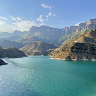 Озеро Гижгит — сияющее кристально чистой водой бирюзового цвета, как жемчужина среди величественных скал.
