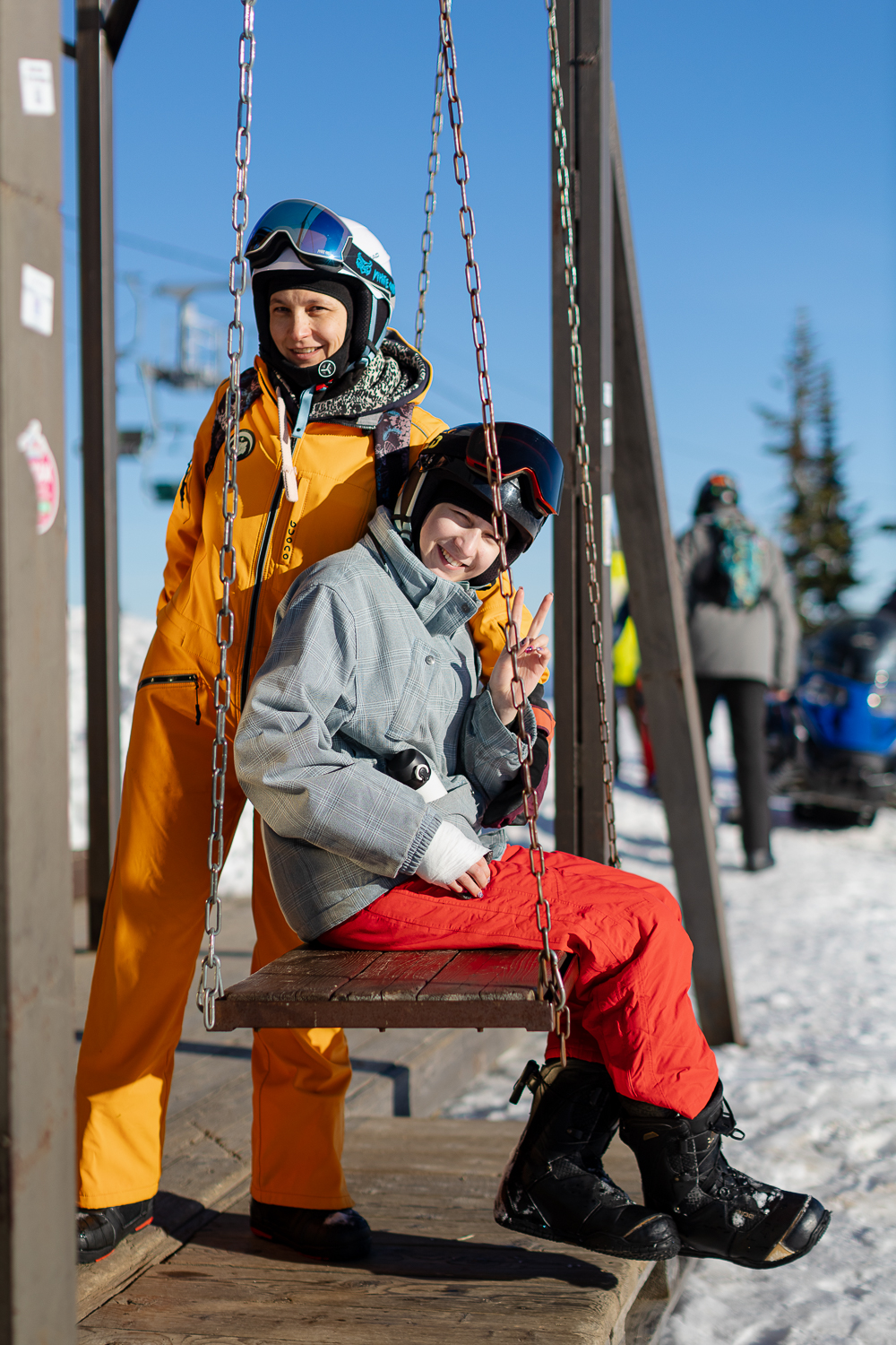 Раскатываем до изнеможения все возможные трассы, кто хочет - фрирайд. Можно взять снегоходы и поехать на Крест. Или сходить посмотреть на альпак/хаски.