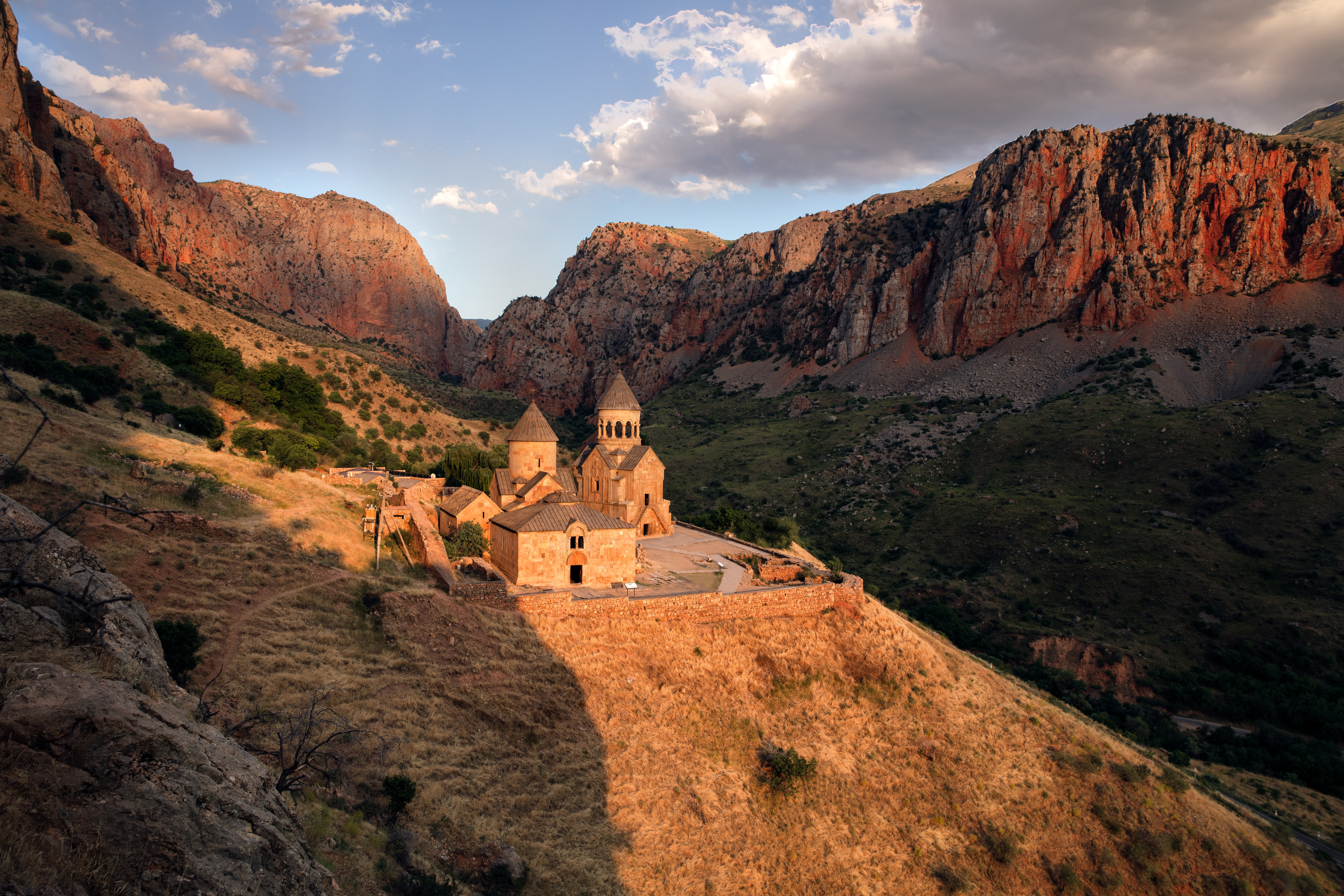 Дорога ведет сквозь красные скалы, и вдруг за поворотом возникает чудо — монастырь, будто выращенный из самой горы. Подниметесь по крутой лестнице, чтобы увидеть хачкары с узорами, которые не повторяются нигде в мире.