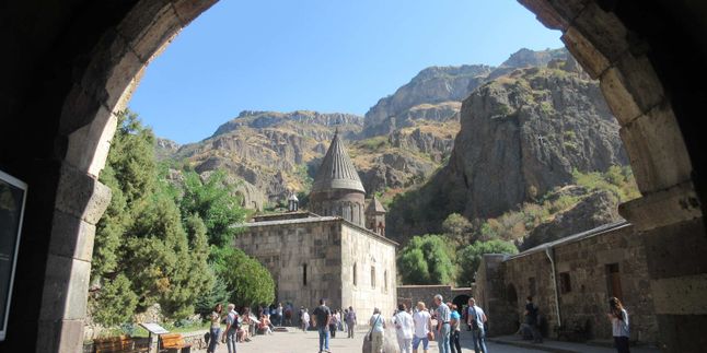Следующей остановкой будет Гегард - монастырский комплекс, внесенный Юнеско в список объектов Всемирного культурного наследия. Полное название - Гегардаванк, дословно - Монастырь копья. Название монастырского комплекса происходит от Копья Христа (Копье Лонгина), которым римский воин Лонгин вонзил в Иисуса Христа. Копье сейчас хранится в сокровищнице Эчмиадзинского кафедрального собора.