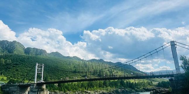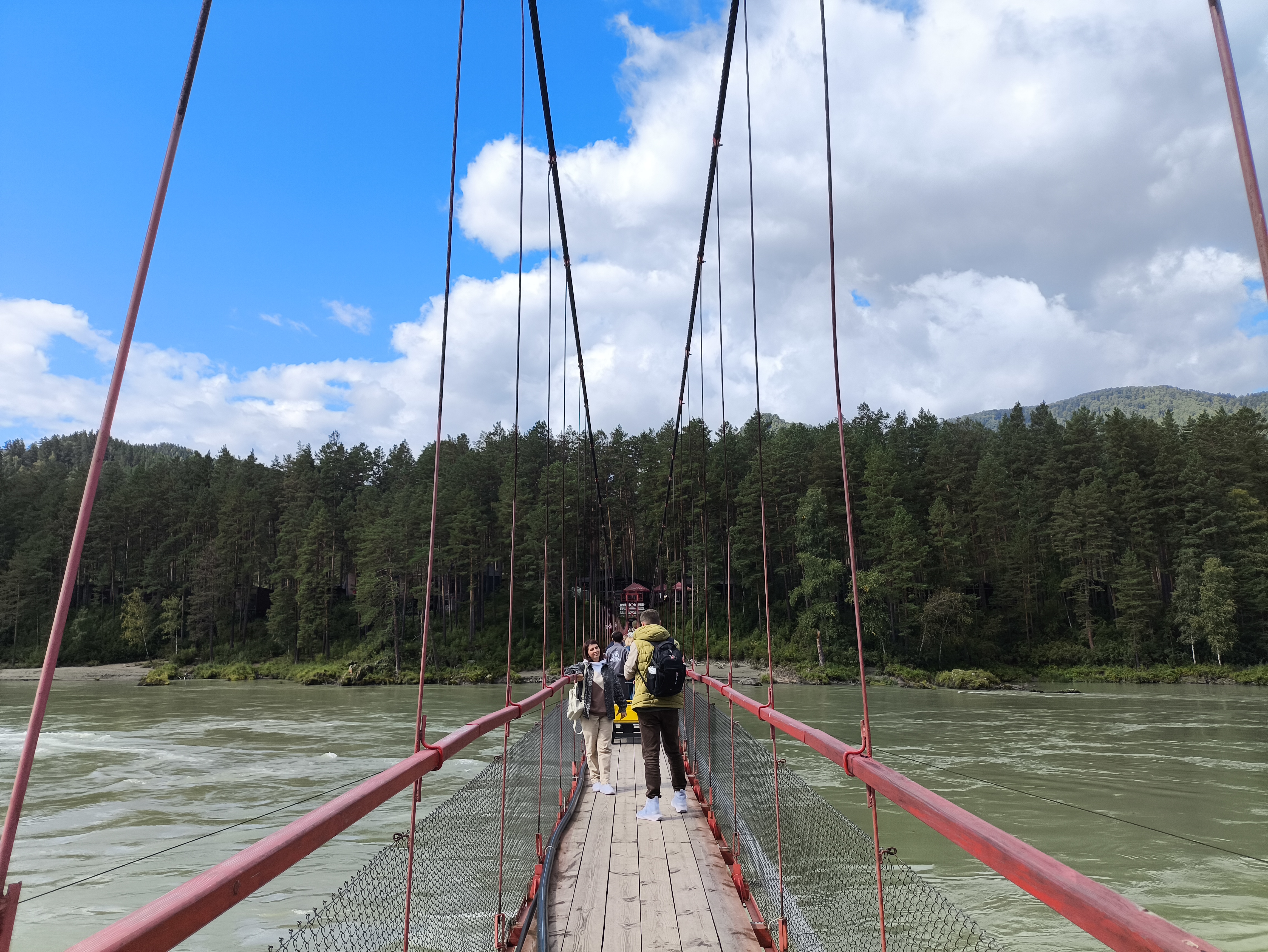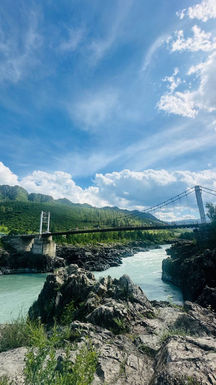 После обеда на базе едем на Ороктойский мост. Он расположен в самом узкое и над самым глубоким местом реки Катунь.