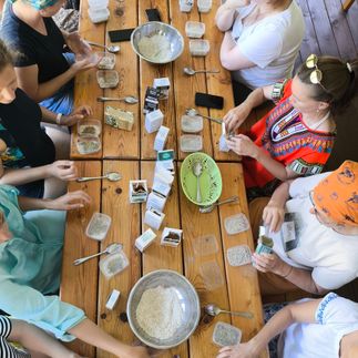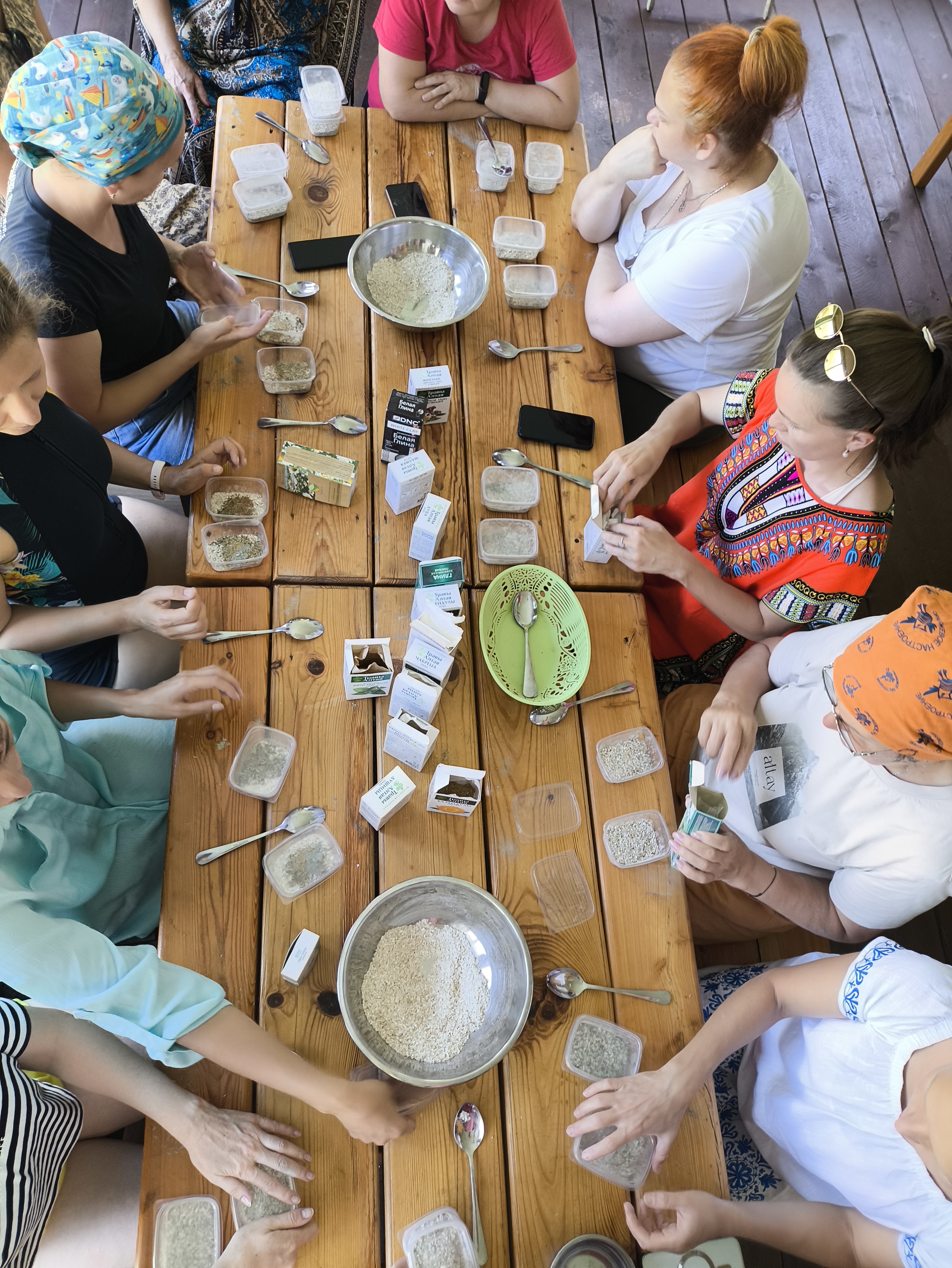 После обеда практика делаем вместе убтан - специальный скраб для снятия масла с тела, готовимся к процедуре промасливания в бане.