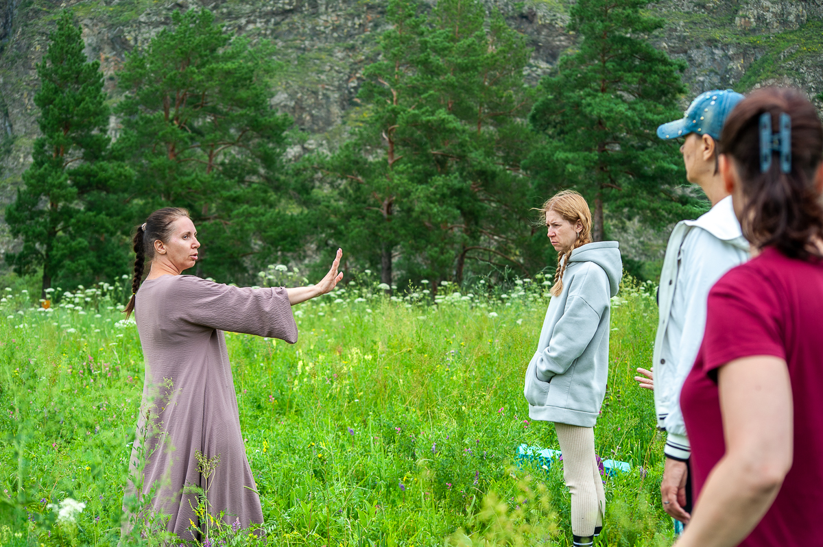 После завтрака мы прогуляемся по деревне и выйдем к мосту через Катунь, где пройдем через портал в долину земли силы. Здесь будет динамическая медитация сердца. Очень сильная и раскрывающая практика. Можно будет посетить храм звука, прогуляться к гонгу, поиграть на волшебном инструменте ханге.