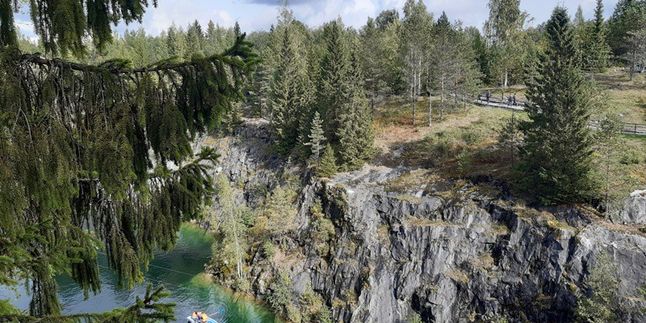 В 14:00 прибудем в парк и начнём пешеходную экскурсию. Посетим Мраморный каньон, пройдём по экотропе с остановками в лучших видовых точках. Протяжённость тропы 1,5 км. С неё можно сойти и посетить штольни, осмотреть залежи итальянского мрамора.