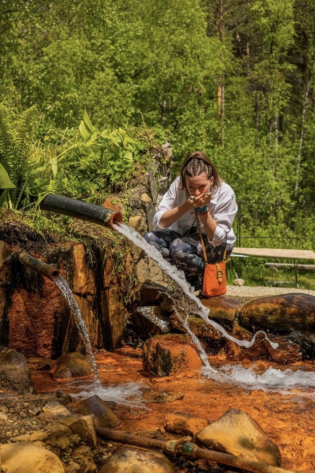 Испробуем настоящую природную газировку из источников, которые бьют прямо на территории.