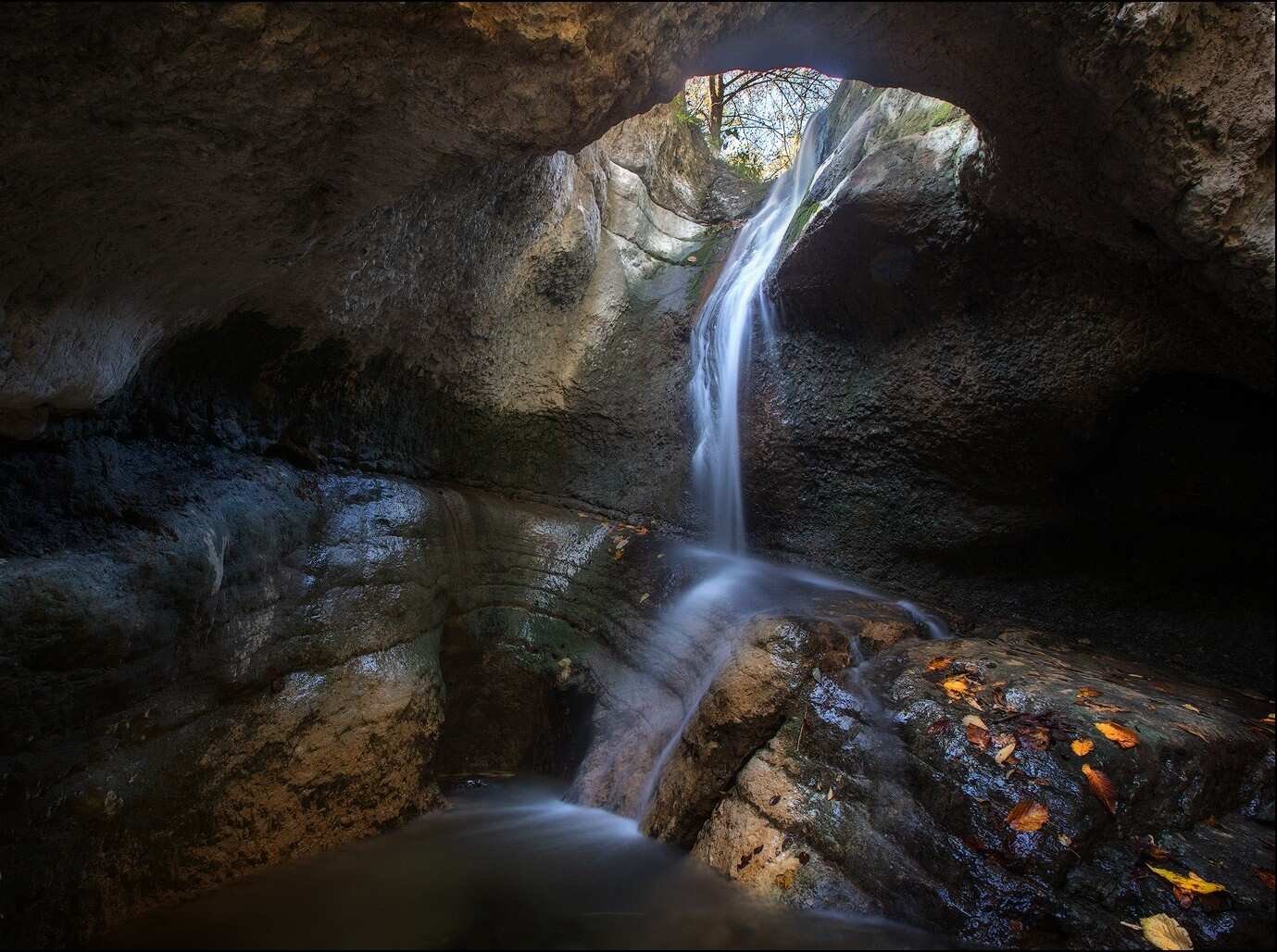 Позавтракаем и поедем к очередной уникальной природной локации — водопаду Кольцо. Бурная горная река промыла в известняковой скале круглое отверстие, через которое вода низвергается вниз, благодаря чему водоём и получил такое название.