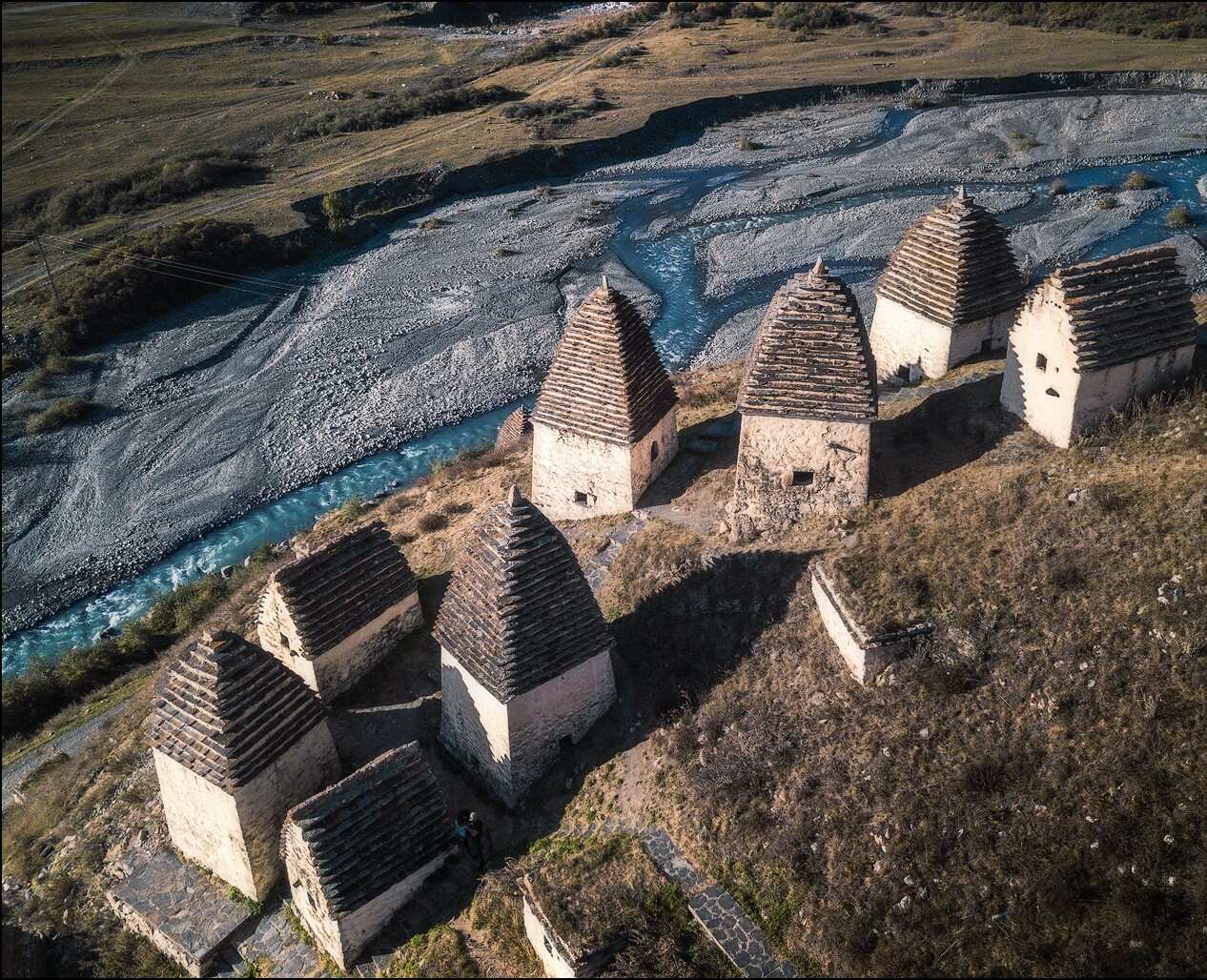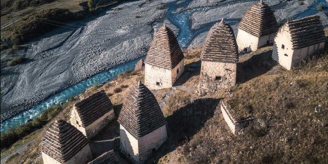 Далее посетим село Даргавс. Осмотрим мистический Город мёртвых — древний некрополь, состоящий из 97 фамильных склепов. Часть из них уходит под землю, другая возвышается на высоту от двух до четырёх этажей.