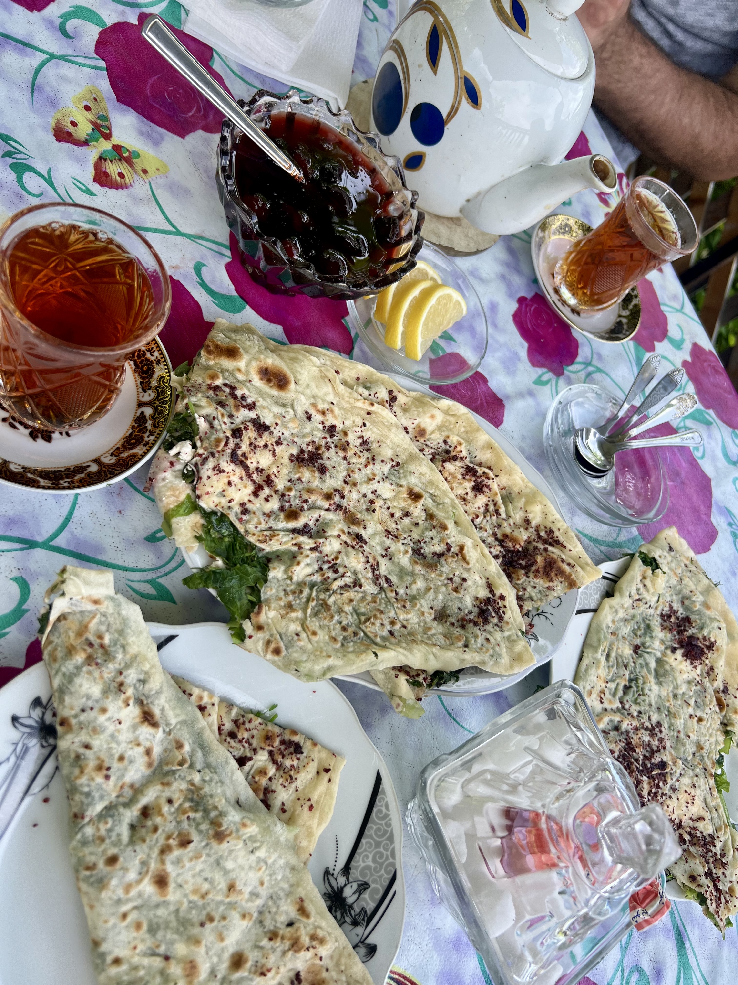 - Вкусные чаепития с местными лепёшками Кутабами и вареньем