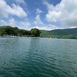 Озеро находится среди гор и окружено великолепными пейзажами. Его воды имеют ярко-голубой цвет, что делает озеро особенно привлекательным.