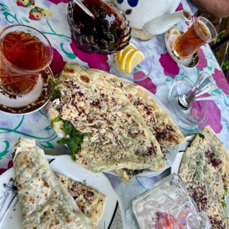 Остановимся на душевный и очень вкусный перекус с лепешками Кутабами и ароматным чаем.