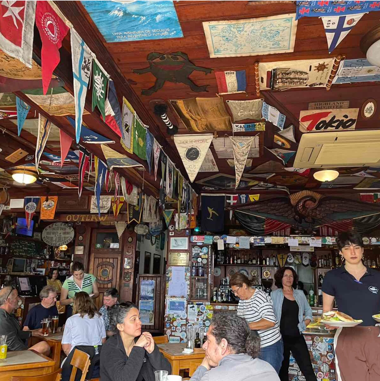 Заселяемся на яхту в Marina da Horta, знакомимся, закупаем провизию, наливаем первое за знакомство и идём ужинать в легендарный бар яхтсменов. Это место, где десятилетиями оставляют свои рисунки и надписи команды со всего мира. Кажется, будто ты вошёл в музей морских историй — и сегодня начинается твоя.