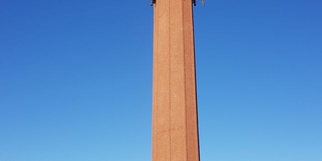 Стелла с Орлом. Проехав поселок Еланцы, мы остановимся у бронзовой фигуры летящего орла — покровителя степных просторов Тажеран и Ольхона. Размах крыльев орла — 7 метров, а высота стелы — 9 метров. Отсюда открывается потрясающий вид на Тажеранские степи, уникальный природный комплекс возрастом около 400 миллионов лет.