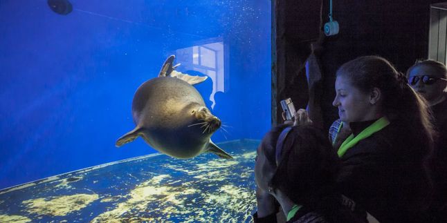 Аквариумы с обитателями Байкала: омулем, хариусом, нерпой и другими.