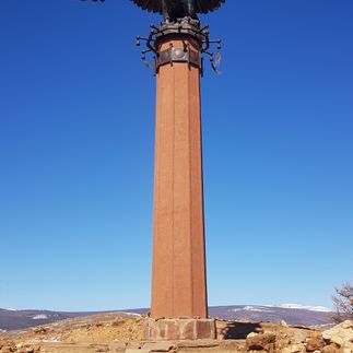 А перед выездом из Тажеранской степи мы сделаем остановку у бронзовой фигуры летящего орла - покровителя степных просторов Тажеран и Ольхона.